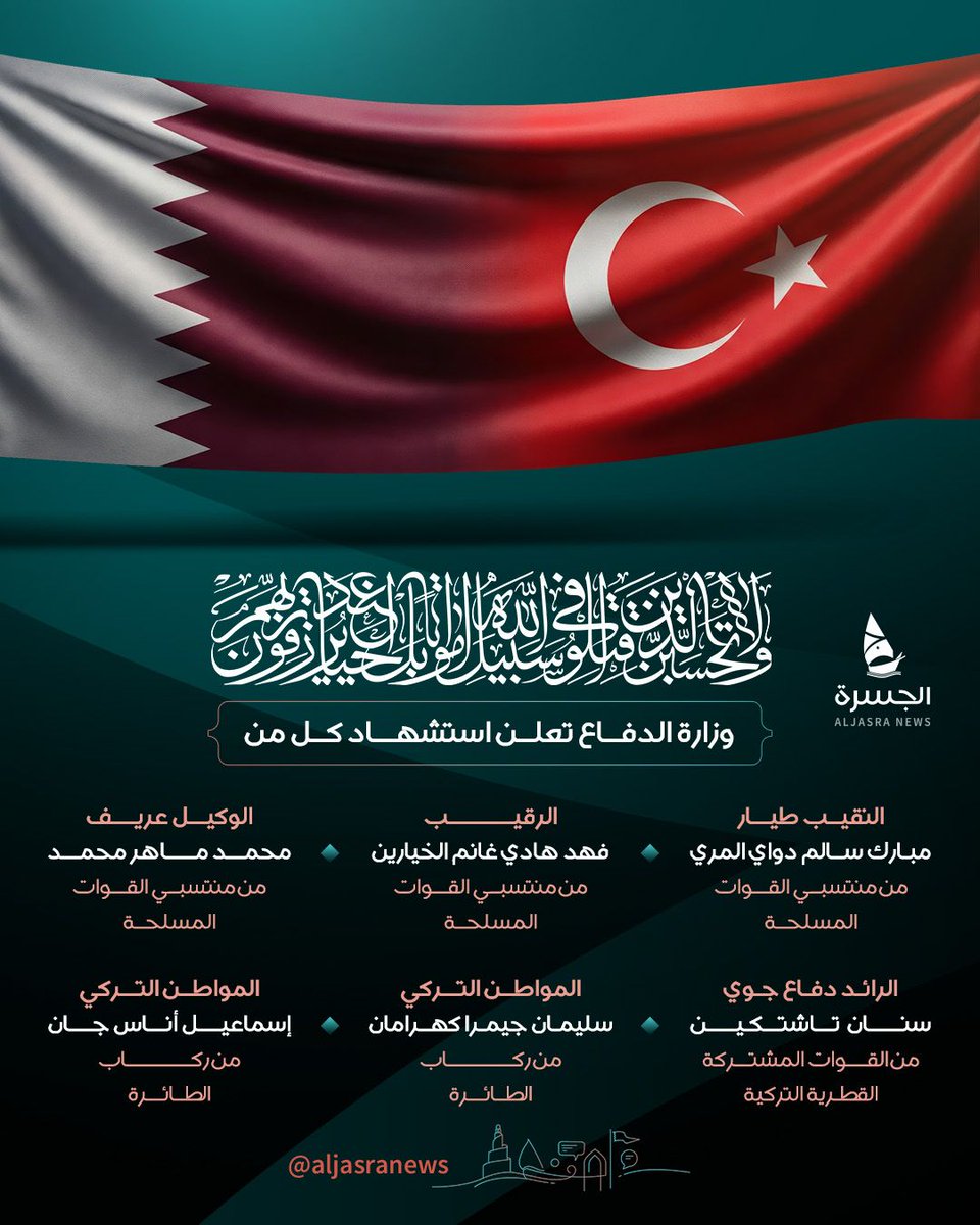 توالت بيانات النعي والتأبين من كبار المسؤولين القطريين وأفراد الأسرة الحاكمة عبر حساباتهم الرسمية، إثر استشهاد 4 من منتسبي القوات المسلحة في حادث سقوط المروحية العسكرية الأليم بالمياه الإقليمية لدولة قطر والذي أودى بحياة 3 شهداء أتراك آخرين.