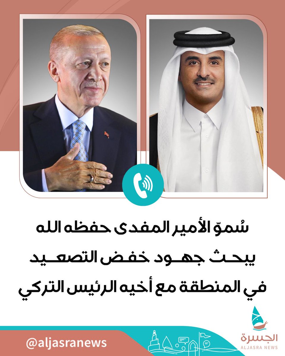 تلقى حضرة صاحب السمو الشيخ تميم بن حمد آل ثاني أمير البلاد المفدى اتصالا هاتفيا الثلاثاء من رئيسة جمهورية سلوفينيا ناتاشا بيرتس موسار، التي أعربت عن صادق تعازيها......